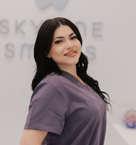 Meet Brenda Velazquez, the welcoming smile you’ll see when you first walk into Skyline Smiles. Brenda began her journey in the dental field three years ago, starting out as a dental assistant. Her passion for patient care and natural ability to connect with people led her to transition into her current role as a front receptionist and treatment coordinator. Brenda takes pride in creating a positive first impression and making sure every patient feels heard, comfortable, and informed from the moment they arrive. Whether she’s helping you schedule an appointment or walking you through your treatment plan, Brenda is always ready with a kind word and a helpful attitude. She’s a key part of what makes our office feel like home.